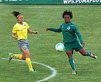 - (pt) « A dois dias da estreia, jogadora da seleção de futebol é cortada », Folha de S.Paulo, (lire en ligne, consulté le )