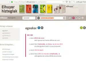 Elhuyar Hiztegia (le Dictionnaire Elhuyar, 1996) est un dictionnaire bilingue basque-espagnol.