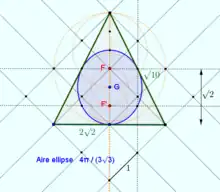 - Parmi toutes les ellipses inscrites dans le triangle, l'ellipse de Steiner est celle qui a une aire maximale. Le rapport de l'aire de l'ellipse sur celle du triangle est égal à .