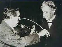 En outre, il s'intéresse à la technique pour interpréter les œuvres baroques et travaille sur la pratique de l'archet courbe (VEGA BACH BOW) [1]. Il s'agit d'un archet courbe, qui facilite le jeu des accords sur trois ou quatre cordes du violon. Avec cet archet, il interprète en 1954 les sonates et partitas pour violon solo de Johann Sebastian Bach [2].