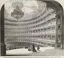 Elle devient alors la première Canadienne de l'histoire à monter sur la scène du Covent Garden, qu'elle anime pendant 20 ans, entre 1872 et 1896[3]. Elle est notamment en concurrence avec Adelina Patti, dont elle se distingue par l'interprétation de multiples rôles dramatiques : Elsa dans Lohengrin, Elisabeth dans Tannhaüser, Senta dans Der Fliegende Holländer, Isolde dans Tristan und Isolde ou encore Desdemona dans Otello[3]. Les saisons des opéras londoniens ne se déroulant qu'entre avril et juillet, il était pratique courante, pour les chanteurs de l'époque, d'organiser des tournées européennes[3]. Après avoir signé un contrat à Londres, Emma Albani part donc pour Paris. Elle monte sur les planches du Théâtre-Italien le 24 octobre 1872[3]. Elle interprète alors trois rôles : Amina (La sonnambula, Bellini), Lucia (Lucia di Lammermoor, Donizetti) et Gilda (Rigoletto, Verdi)[10]. Les critiques parisiennes sont toutefois mitigées, comme l'explique l'historienne Myriam Wojcik :