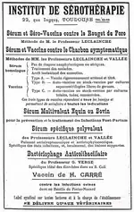 De retour à Toulouse, Leclainche reçoit le soutien d’un collègue, Dominique Bimes, professeur d’anatomie pathologique à l'école vétérinaire avec lequel il s’est associé en 1903 pour créer la Revue générale de médecine vétérinaire. Bimes a été le chef de travaux du professeur de physiologie Ferdinand Laulanié, directeur libéral de l'école vétérinaire et grand scientifique, qui a accueilli Leclainche à son arrivée d'Alfort. Bimes, avec le soutien de Mme Leclainche, parvient à le convaincre de produire lui-même ses sérums et vaccins. Tous deux achètent alors, le 28 juin 1905, une villa au fond d’un jardin située au 22 rue Ingres, juste en face de la villa de Leclainche (au numéro 21), pour la somme de 10 000 francs[5] Ils y installent rapidement le matériel de laboratoire indispensable et trouvent une place pour la dizaine de chevaux immunisés cédés par l’État. Ils sont aidés dans cet aménagement précaire par leur préparateur, Maurette, qui vient leur prêter main-forte en dehors de ses horaires de travail.
