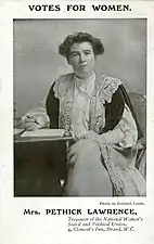 Avec Constance Bulwer-Lytton, elle crée la Maison Espérance, une coopérative de couture offrant un salaire minimum, une journée de huit heures et un programme de vacances. En 1901, elle épouse l'homme politique travailliste Frederick Pethick-Lawrence. Membre de la Suffrage Society, elle est présentée à la dirigeante suffragette Emmeline Pankhurst en 1906. Elle devient trésorière de la Women's Social and Political Union (WSPU), recueillant 134 000 £ sur six ans[3].