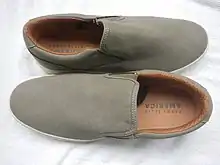 Chaussures à empeigne : bout brun et claque blanche (parties entre l'extrémité et les lacets).