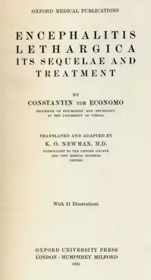 - (de) K. von Economo « Encepahlitis lethargica » Wiener klinische Wochenschrift 10 mai 1917;30:581-585. « Die Encephalitis lethargica » Leipzig and Vienna, Franz Deuticke, 1918.