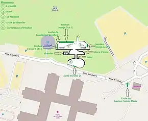L'enclos et son cimetière font partie des vestiges du bastion Saint-François de l'ancienne citadelle.