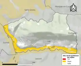 Les mouvements de terrains susceptibles de se produire sur la commune sont soit des chutes de blocs, soit des glissements de terrains, soit des effondrements liés à des cavités souterraines, soit des mouvements liés au retrait-gonflement des argiles. Près de 50 % de la superficie du département est concernée par l'aléa retrait-gonflement des argiles, dont la commune d'Encourtiech[42]. L'inventaire national des cavités souterraines permet par ailleurs de localiser celles situées sur la commune[43].