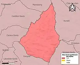 Le retrait-gonflement des sols argileux est susceptible d'engendrer des dommages importants aux bâtiments en cas d’alternance de périodes de sécheresse et de pluie. La totalité de la commune est en aléa moyen ou fort (94,5 % au niveau départemental et 48,5 % au niveau national). Sur les 250 bâtiments dénombrés sur la commune en 2019, 250 sont en aléa moyen ou fort, soit 100 %, à comparer aux 93 % au niveau départemental et 54 % au niveau national. Une cartographie de l'exposition du territoire national au retrait gonflement des sols argileux est disponible sur le site du BRGM[24],[Carte 3].