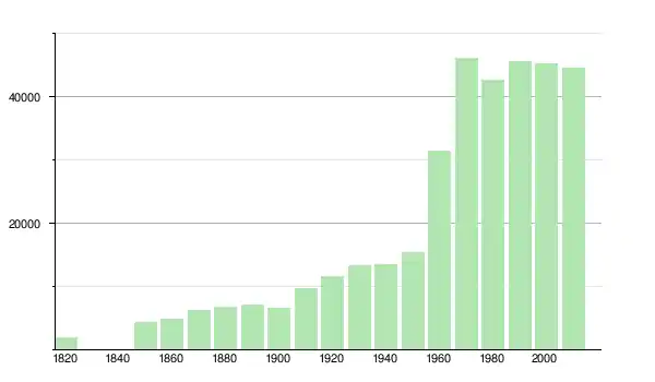 Dans la ville la pyramide des âges était 22,6 % en dessous de 18 ans, 7,6 % de 18 à 24 ans, 34,2 % de 25 à 44 ans, 21,9 % de 45 à 64 ans, et 13,7 % qui avaient 65 ans ou plus. L'âge médian était 37 ans. Pour 100 femmes, il y avait 110,2 hommes. Pour 100 femmes de 18 ans ou plus, il y avait 112,7 hommes.