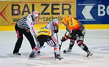 Les engagements se déroulant généralement sur des repères appelés cercle ou points d'engagement. Il y a neuf ronds sur la surface de la patinoire :