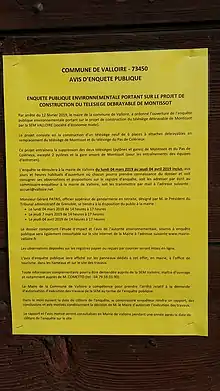 - ouverte localement, sur et autour des lieux impactés, dans la (ou les) mairie(s) concernée(s) par le projet ; Pour cela un minimum de publicité est réglementé[10] ;