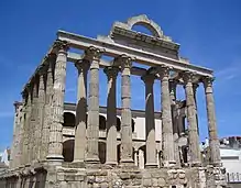 Le temple de Diane appartenait au forum municipal. Aujourd'hui dépourvu de sa toiture, il s'agit d'un édifice en bon état de conservation. C'est l'une des rares constructions religieuses à n'avoir pas excessivement souffert des outrages du temps. Cette caractéristique s'explique notamment par son incorporation dans le Palais du Comte de los Corbos, de style Renaissance, dont subsistent quelques vestiges à l'intérieur même du temple. Il est aujourd'hui connu sous son invocation à Diane, déesse de la chasse dans la mythologie romaine. Il n'en était pourtant rien à l'époque. Ce lieu était en réalité voué au culte impérial.