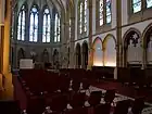 La chapelle est située dans l'axe du vestibule d'entrée[19]. Construite dans un style néogothique qui évoque des formes médiévales, ses voûtes sont hautes et son chœur plutôt spacieux. L'édifice religieux de l'établissement est également pourvu d'un orgue fonctionnel, régulièrement entretenu. C'est saint Louis de Gonzague qui inspire à Paul Dupont des Loges la construction du Petit Séminaire, à commencer par cette chapelle.