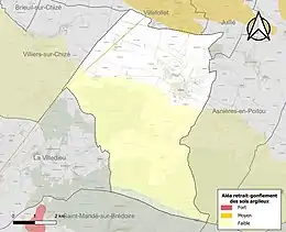 Les mouvements de terrains susceptibles de se produire sur la commune sont des tassements différentiels[17]. Le retrait-gonflement des sols argileux est susceptible d'engendrer des dommages importants aux bâtiments en cas d’alternance de périodes de sécheresse et de pluie[18]. 0,1 % de la superficie communale est en aléa moyen ou fort (54,9 % au niveau départemental et 48,5 % au niveau national)[Carte 2]. Depuis le , en application de la loi ELAN, différentes contraintes s'imposent aux vendeurs, maîtres d'ouvrages ou constructeurs de biens situés dans une zone classée en aléa moyen ou fort[Note 2],[19].
