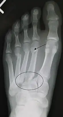 Une entorse de Lisfranc, également connue sous le nom de fracture-luxation de Lisfranc, est une blessure du pied dans laquelle un ou plusieurs métatarses sont déplacés par rapport aux os du tarse[1],[2].