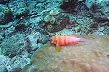 Epinephelus fasciatus, communément nommé Mérou oriflamme, Loche rouge[1] entre autres noms vernaculaires, est une espèce de poissons marins de la famille des Serranidae.