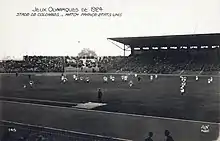 Une équipe française comprenant des joueurs de trois clubs parisiens (Racing club de France, Stade français et Cosmopolitain) dispute le tournoi olympique de 1900. Cette formation bat le club allemand du FC Francfort (par 27 à 17) le 14 octobre au vélodrome municipal de Vincennes, puis remporte le titre olympique en battant aussi l'équipe anglaise des Moseley Wanderers le 28 octobre sur le score de 27 à 8[8]. Ce match est disputé au même endroit devant 6 000 spectateurs, c'est la plus grosse affluence des Jeux olympiques.