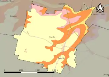 Par ailleurs, le sol du territoire communal peut faire l'objet de mouvements de terrain liés à la sécheresse. Le phénomène de retrait-gonflement des argiles est la conséquence d'un changement d'humidité des sols argileux. Les argiles sont capables de fixer l'eau disponible mais aussi de la perdre en se rétractant en cas de sécheresse[33]. Ce phénomène peut provoquer des dégâts très importants sur les constructions (fissures, déformations des ouvertures) pouvant rendre inhabitables certains locaux. Celui-ci a particulièrement affecté le Loiret après la canicule de l'été 2003. Une grande partie du territoire de la commune est soumise à un aléa « faible » face à ce risque, selon l'échelle définie par le Bureau de recherches géologiques et minières (BRGM)[34].