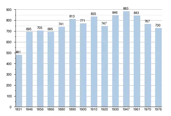 - Sources : INS, Rem. : 1831 jusqu'en 1970 = recensements, 1976 = nombre d'habitants au 31 décembre.