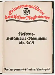 Erinnerungsblätter deutscher Regimenter est une série de livres publiés après la fin de la Première Guerre mondiale jusque dans les années 1940. Chaque volume décrit l'histoire opérationnelle d'un régiment ou d'un bataillon indépendant de l'armée de l'Empire allemand pendant la guerre mondiale. Au total, 1 250 volumes sont publiés[1]. Les Erinnerungsblätter paraissent en quatre parties régionales avec une numérotation consécutive distincte pour les unités prussienne, bavaroise, saxonne et wurtembergeoise. Cette dernière série régionale s'intitule Die württembergischen Regimenter im Weltkrieg.