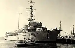 La propulsion est constituée de deux moteurs diesel de 7 800 chevaux, couplés sur les mêmes essieux à deux moteurs électriques alimentés par deux unités diesel-dynamo d'une puissance totale de 1 300 chevaux, ce qui permet une vitesse maximale de 20 nœuds (37 km/h) avec le fonctionnement simultané des deux systèmes, et de 18 nœuds (33 km/h) avec la seule propulsion diesel. L'autonomie avec la propulsion diesel est de 6 950 milles nautiques (12 870 km) à 12 nœuds (22 km/h). Le navire, initialement classé comme un croiseur puis comme un navire de soutien, est équipé d'un armement multi-rôle pour la guerre et capable d'assurer des fonctions d'alerte et d'escorte, de soutenir les sous-marins et de poser des mines.