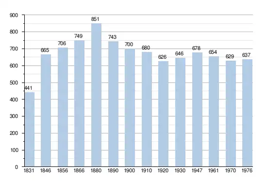 - Sources:INS, Rem:1831 jusqu'en 1970=recensements, 1976= nombre d'habitants au 31 décembre