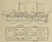 Le brevet du navire rouleur est déposé le . C'est un bateau de 39 mètres de long, d'une capacité prévue initialement pour cent passagers, d'abord équipé de six roues de dix mètres de diamètre[11]. Il est suivi d'un autre prototype à huit disques[12],[N 13].