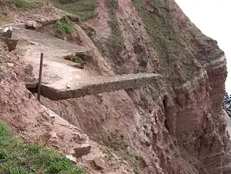 - La nature rocheuse de la côte. Par exemple, pour les falaises rocheuses dures (granite, gneiss), le recul moyen annuel est inférieure à 1 mm/an ; pour les roches à côtes plus tendres (calcaire, schiste), il est de l'ordre de 1 à 10 mm/an ; pour la craie et les roches sédimentaires du Tertiaire, de l'ordre de 0,1 à 1 m/an ; de 1 à 10 m/an pour les dépôts quaternaires ; de l'ordre de 10 m/an pour les falaises de roches meubles (molasse, flysch, argile à silex, sables, marnes, dépôts volcaniques meubles)[11]. Pour les côtes à falaises, la valeur de ce recul est tributaire de la lithologie du rivage, mais aussi de l'exposition de la côte aux agents de la dynamique marine.