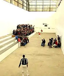 Quand ils entrent dans un trinquet, les spectateurs doivent choisir où ils vont s’assoir. Les plus prudents s’installent dans les « galleries », situées au-dessus des murs, les plus courageux et les passionnés dans la « llotgeta ». Certains privilégiés peuventt s’assoir sous la corde mais les plus nombreux vont sur les gradins du milieu de terrain.