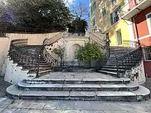 L'escalier est conçu entre les années 1871 et 1873 par l'architecte Paul-Augustin Viale. Il comprend une fontaine, une niche avec une statue, des vases avec piédestaux.