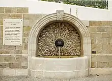 L'escalier est disposé symétriquement dans sa partie basse, qui comprend également deux fontaines, et comporte deux escaliers courbes symétriques. Au-dessus du bassin inférieur, plus petit, un masque de tête fait office de gargouille, au-dessus du bassin supérieur une bouche de poisson distribue de l'eau dans une niche bordée de graviers du Danube (mais maintenant avec une mosaïque). Dans les parties supérieures, le système se compose d'éléments d'escalier et de rampe qui offrent aux piétons des perspectives en constante évolution.