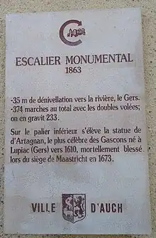 - « Escalier monumental d'Auch », notice no PA00132674, sur la plateforme ouverte du patrimoine, base Mérimée, ministère français de la Culture