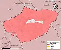 Le retrait-gonflement des sols argileux est susceptible d'engendrer des dommages importants aux bâtiments en cas d’alternance de périodes de sécheresse et de pluie. 96,8 % de la superficie communale est en aléa moyen ou fort (88,8 % au niveau départemental et 48,5 % au niveau national). Sur les 2 141 bâtiments dénombrés sur la commune en 2019, 1 979 sont en aléa moyen ou fort, soit 92 %, à comparer aux 98 % au niveau départemental et 54 % au niveau national. Une cartographie de l'exposition du territoire national au retrait gonflement des sols argileux est disponible sur le site du BRGM[24],[Carte 3].