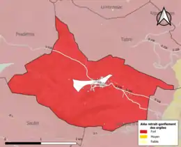 Les mouvements de terrains susceptibles de se produire sur la commune sont soit des chutes de blocs, soit des glissements de terrains, soit des effondrements liés à des cavités souterraines, soit des mouvements liés au retrait-gonflement des argiles. Près de 50 % de la superficie du département est concernée par l'aléa retrait-gonflement des argiles, dont la commune d'Esclagne[34]. L'inventaire national des cavités souterraines permet par ailleurs de localiser celles situées sur la commune[35].