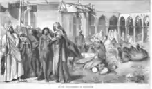 Marché aux esclaves devant l'église anglicane de Stone Town à Zanzibar, par Edwin Roper Loftus Stocqueler (en), 1860.