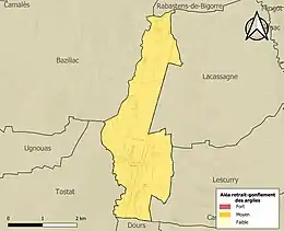Les communes les plus proches[Note 1] sont[3] : Lescurry (2,0 km), Castéra-Lou (2,3 km), Tostat (2,4 km), Lacassagne (2,4 km), Ugnouas (2,5 km), Bazillac (2,9 km), Villenave-près-Marsac (3,4 km), Marsac (3,7 km).