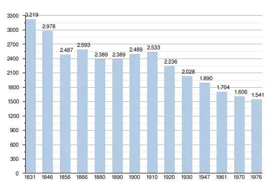 - Sources : INS, Rem. : 1831 jusqu'en 1970 = recensements, 1976 = nombre d'habitants au 31 décembre[5].
