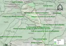 - le « massif de Quérigut et forêt du Carcanet (Donezan) » (12 107 ha), couvrant 16 communes dont 9 dans l'Ariège, 5 dans l'Aude et 2 dans les Pyrénées-Orientales[26] ;