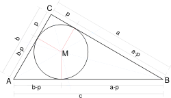Le plan hyperbolique est un espace hyperbolique à ce sens ; en fait, le cercle inscrit d'un triangle géodésique (le plus grand cercle contenu dans le triangle) a un diamètre inférieur à celui d'un triangle idéal (dont tous les sommets sont à l'infini) et ceux-ci, tous isométriques entre eux, ont un cercle inscrit de rayon ln(3)[7]. Pour la même raison, le plan euclidien n'est pas hyperbolique, les cercles inscrits pouvant être de rayon arbitrairement grand.