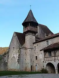 À l'origine de ce « village-monastère », aux toits aigus et ceinturés de falaises blanchâtres, se trouve encore « l'Hébrardie » rencontrée à Cajarc sur le chemin de Compostelle principal.
