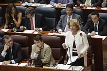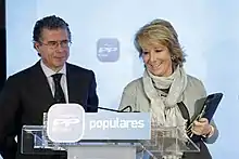 Esperanza Aguirre y Gil de Biedma ([espeˈɾãnθa aˈɣire i̯ ˈxil de ˈβjeðma][alpha 1]) est une femme politique espagnole membre du Parti populaire (PP), née le à Madrid.