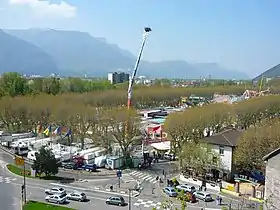 L'Esplanade de Grenoble se présente sous la forme d'un vaste quadrialtère, bordée d'arbres, située entre les berges de l'Isère (bordée une voie routière) à l'ouest et au sud, le boulevard de l'Esplanade et ses immeubles, à l'est et la commune de Saint-Martin-le-Vinoux, au nord. Durant une grande partie de l'année, elle est utilisée comme un vaste parking mais elle peut accueillir des manifestations telles que le festival international du cirque de Grenoble[7] et l'actuelle Foire des Rameaux, chaque durant la période des vacances de Pâques. Le site est alors entièrement occupé par des attractions foraines, ouvertes à tous les visiteurs.
