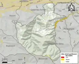 Les mouvements de terrains susceptibles de se produire sur la commune sont soit des chutes de blocs, soit des glissements de terrains, soit des effondrements liés à des cavités souterraines, soit des mouvements liés au retrait-gonflement des argiles. Près de 50 % de la superficie du département est concernée par l'aléa retrait-gonflement des argiles, dont la commune d'Esplas-de-Sérou[42]. L'inventaire national des cavités souterraines permet par ailleurs de localiser celles situées sur la commune[43].