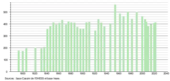 - Fiches Insee - Populations légales de la commune pour les années 2006, 2007, 2008, 2009, 2010, 2011, 2012, 2013, 2014, 2015, 2016, 2017, 2018, 2019, 2020 et 2021.