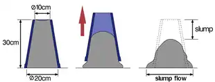 - le cône d'Abrams est un cône en acier galvanisé. Il a un diamètre intérieur à sa base de 200 mm, un diamètre intérieur à son sommet de 100 mm et une hauteur de 300 mm[2]. Il porte le nom de son inventeur Duff Abrams[3] ;