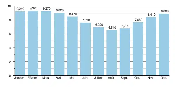 Le module de la rivière à Ballancourt-sur-Essonne est de 8,17 m3/s.