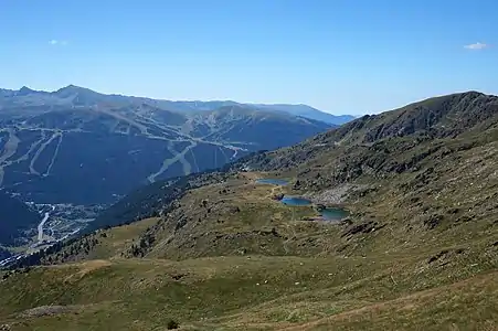 Basses de les Salamandes et Estanyó del Querol vus depuis la Serra de Cabana Sorda |