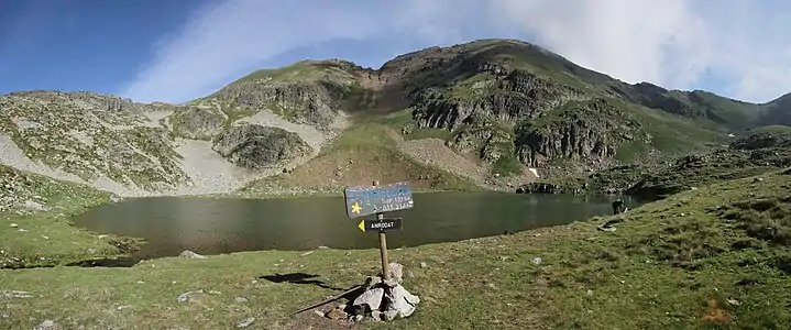 | Estany de l'Isla sur la carte géologique de l'Andorre | Pic de la Coume d'Enfer dominant le lac |