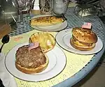 La façon de manger à l’américaine n'a eu de cesse de s’exporter comme le fait de manger de la viande entre deux tranches de pain, nous pouvons ainsi parler du fameux Hamburger inventé par les migrants germains. Dans la même famille culinaire toujours importée par les Germains nous avons les Hot Dog. Cette façon de manger s’adapte parfaitement à la façon de vivre des pionniers qui ne cessent de se déplacer peu sédentaire au départ[33].