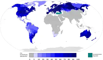 Au dix-huitième et surtout au dix-neuvième siècle, de nombreux Européens migrent hors d'Europe, en particulier en Amérique du Nord (États-Unis, Canada), en Océanie (Australie, Nouvelle-Zélande), en Afrique australe (Afrique du Sud) ou dans le Cône Sud de l'Amérique latine (notamment en Argentine). Leurs descendants forment encore à ce jour la majorité de la population dans la plupart de ces pays.